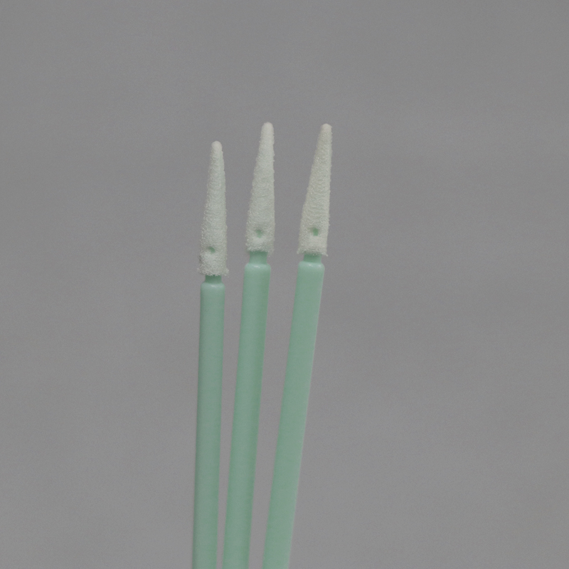 Cleanroom swab is constructed from compressed, 100 ppi (Z) open-cell foam that is free from organic contaminants. The foam is thermally bonded to the handle, thus, eliminating the use of contaminating adhesives. It has a compact mini compressed foam head which possesses firmness and a pointed tip. It is an excellent and popular swab for cleaning small slots, grooves, and right angle corners on the sliders and actuator arm of the magnetic head stack assembly in hard disk drive industry.